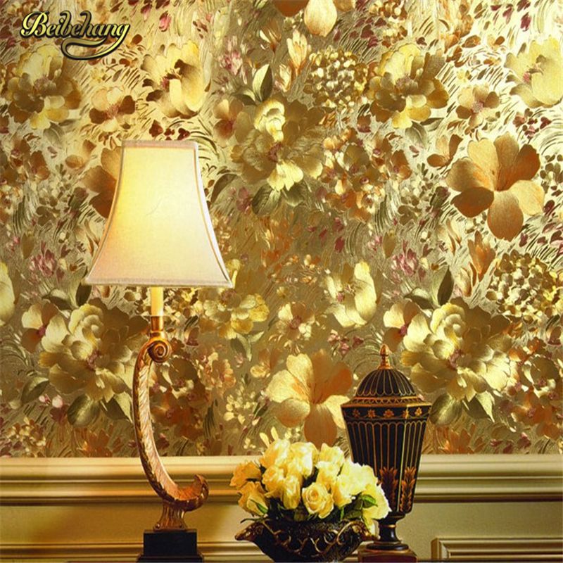 Beibehang 53x1000cm Papel De Parede Floral Gold Foil Wallpaper